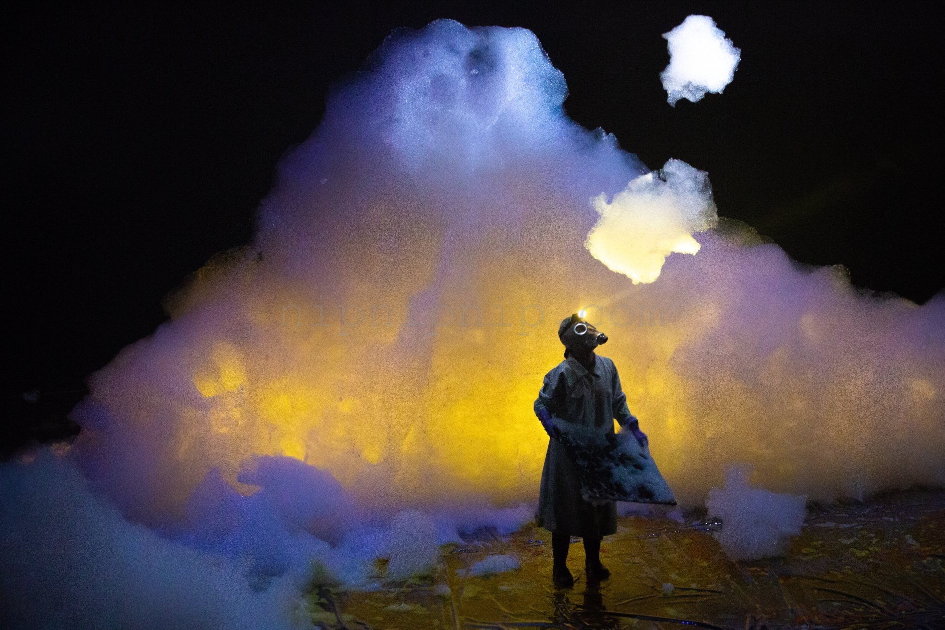 Hundreds of heaps in our lives, piling up from the ground, have enveloped our surroundings. It seems as if something is swirling in the air, the image which looks so real in the water suddenly becomes blurry. As we look up, we only realise the reality is far from what we have seen in the water: the natural sights and objects are all illusionary and only clots of sticky substances are flocking in from all directions. After unceasing moments of silence, we can seemingly hear something calling for the future from the past and coming back to the present. All the abstract and the concrete co-exist in deformation. Although the wind is howling, we cannot feel even the slightest trace of it, yet beads of sweat trickle down in the dark.